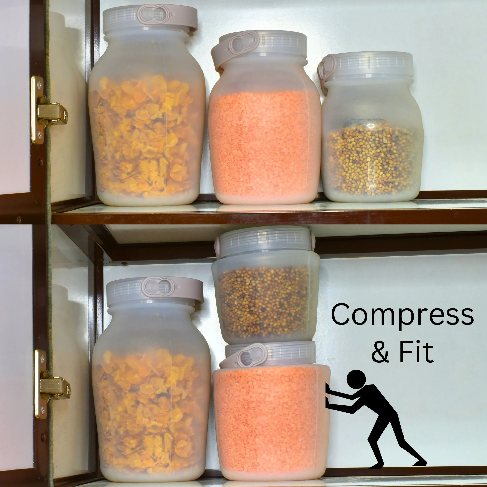 Secure lid helps keep food fresh longer while preventing spills during fridge or freezer storage. Much lighter than glass jars and easier to handle. Our Flexi jar with detachable Handles, Flexible silicone, wide mouth and fill lines allows for efficient storage and effortless food removal without bulky containers.